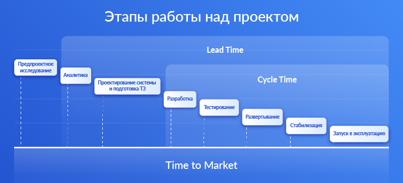 При оценке Time to Market учитываются все этапы работы над проектом: