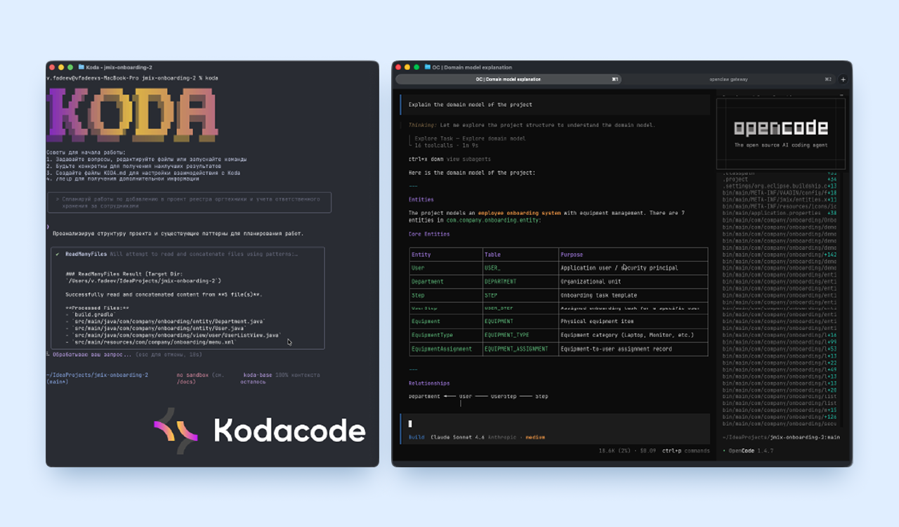ИИ-агент Kodacode. CLI-агент для разработки на локальных языковых моделях с доступом к проектной документации. Работает во внутреннем контуре, показывает хороший результат на любых моделях с открытыми весами.